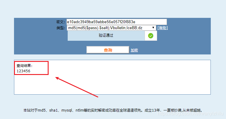 主要参数说明: admin_name,【管理员用户名是明文显示】; admin_pwd,【管理员密码使用md5进行了简单加密】; admin_random,【安全码,如果为开机安全码验证登陆,可忽略】; 3,将图片红框内admin_pwd的内容复制下来,来到md5在线解密平台 https://www.cmd5.com/ 把复制的内容粘贴到密文框内点击查询即可得到忘记的密码。知道密码后我们直接登陆后台就可以了。