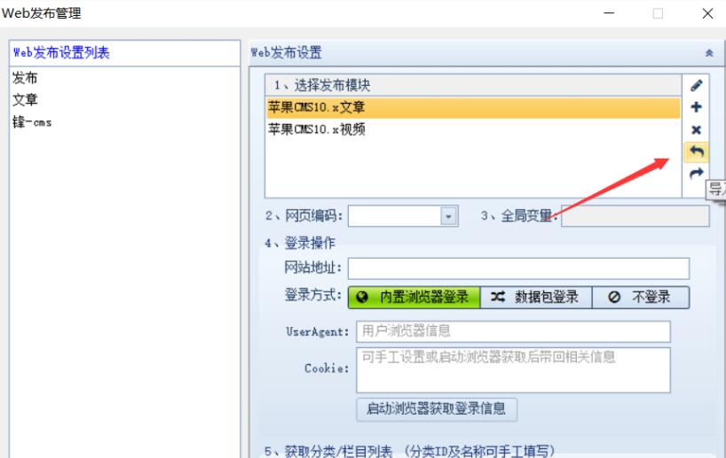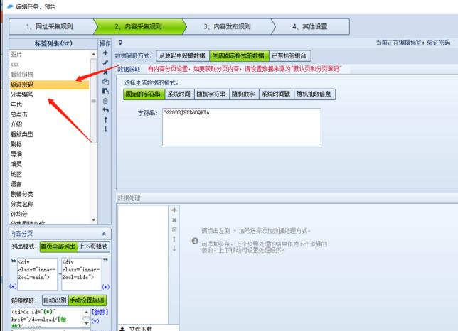 4、修改采集规则,配置发布模块最关键的一步,也是很多人出错或是甚至弄不懂的地方。我用箭头所指向的地方就是我们要配置的地方。如下图