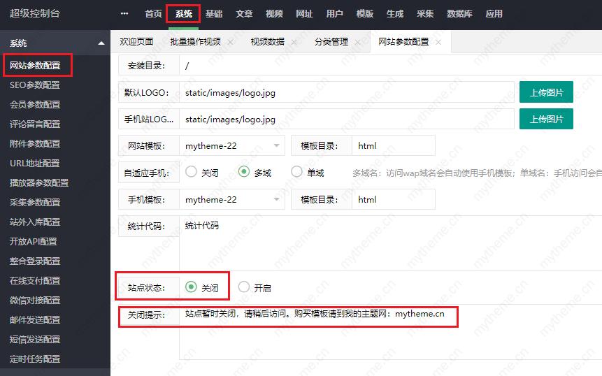 我们只需要登录后台-系统-网站参数配置-基本设置-站点状态