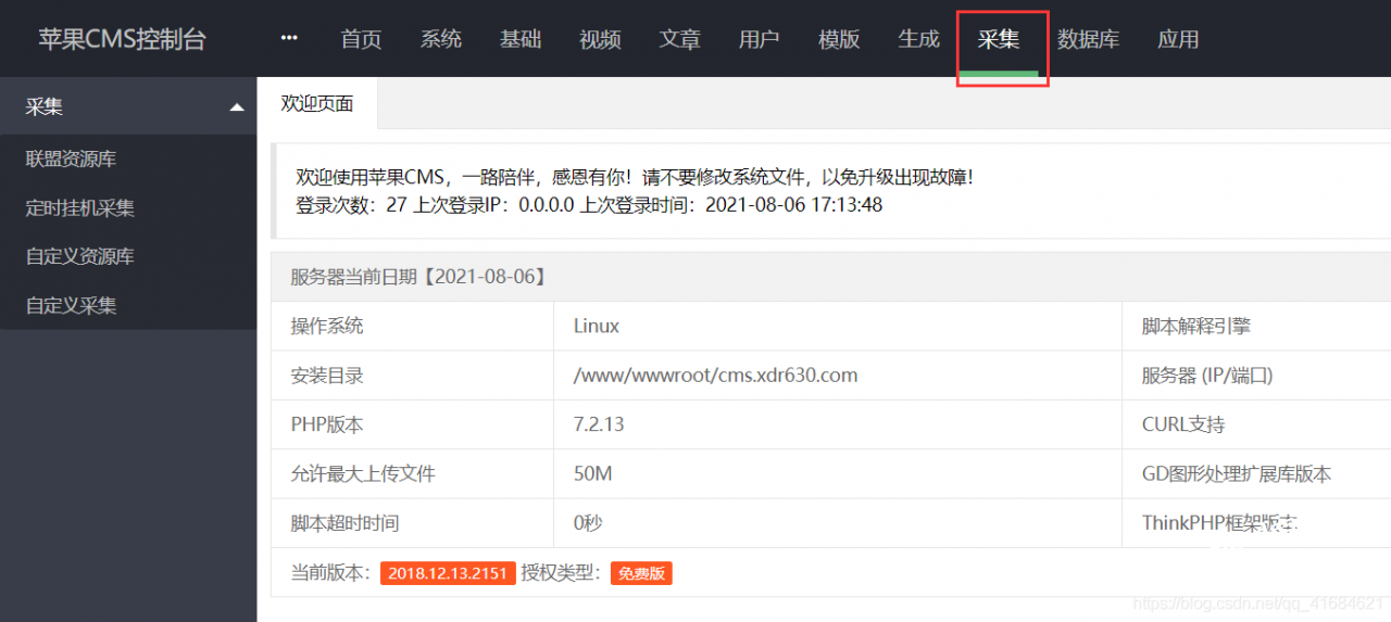 后台找到“系统”、“采集参数配置”,视频采集设置,然后安装图中所示设置,主要开启自动同步图片、入库重复规则勾选上分类,二次更新规则勾选上播放地址、下