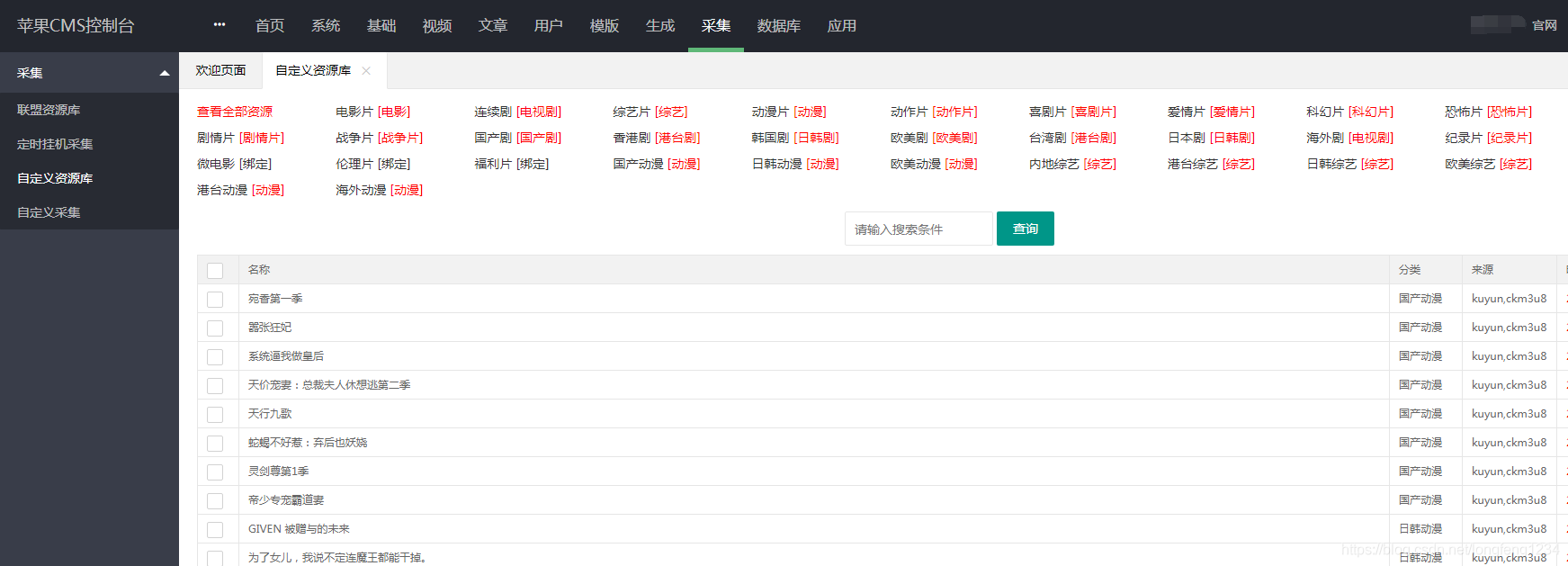 苹果CMS、海洋CMS自动定时采集-可采集任意自定义指定资源(苹果cms采集教程)