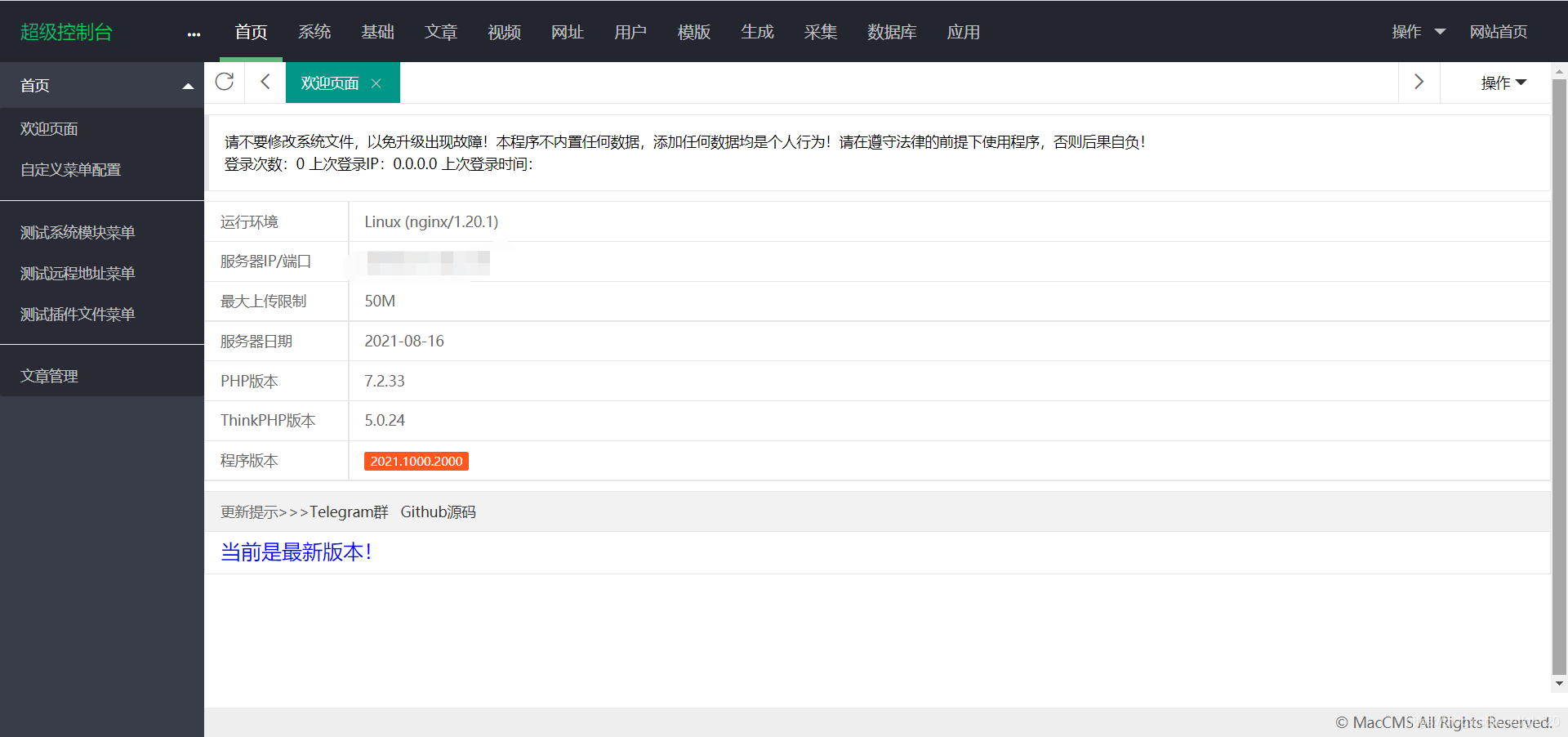 至此,一个影视网站的搭建就成功了一半了,因为时间原因,这篇文章只讲解搭建教程,后续的模板安装,数据采集参考下方文章