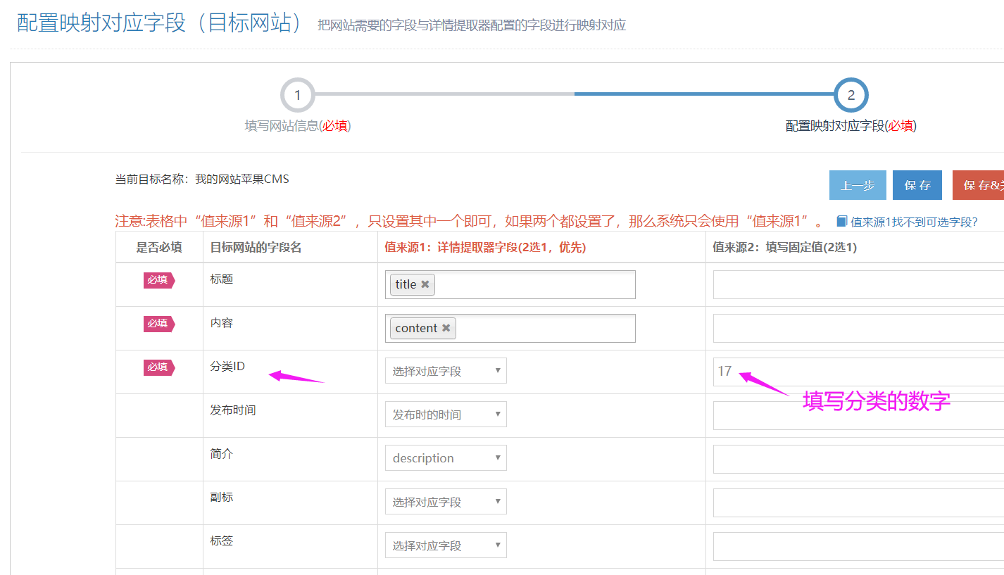 进入简数控制台,从”我的采集任务“列表中打开一个任务,进入采集任务管理页面,找到【发布目标管理】 ==》点击【发布更多CMS】==》点击【苹果CMS文章】,在配置页面填写基本信息和设置发布对应字段,如下图: