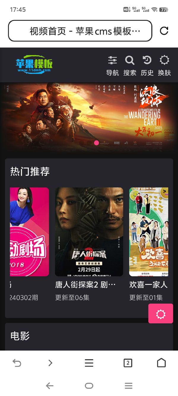 非传统竖版设计,而是与红粉电影站/x站自适应模板一样,大胆采用了左侧导航栏,区别在于之前粉色,而这套模板是其基础上的红色设计,当然在一些细节上也有些许差异,清理