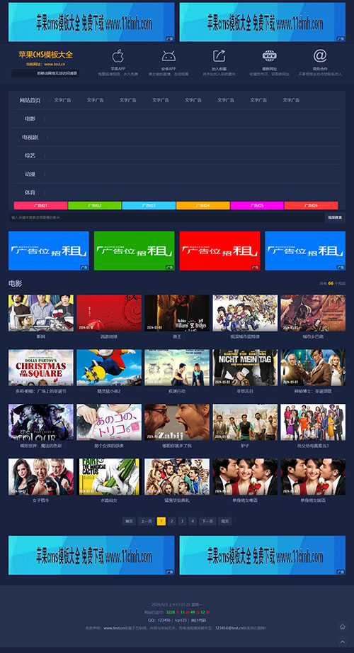 蓝色简约影视网站自适应4号模板下载 -苹果cms10模板免费下载