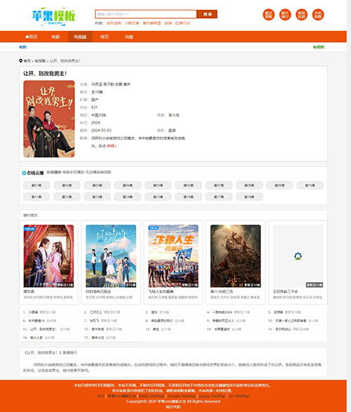 橙色影视网站自适应模板下载 -苹果cms10模板免费下载