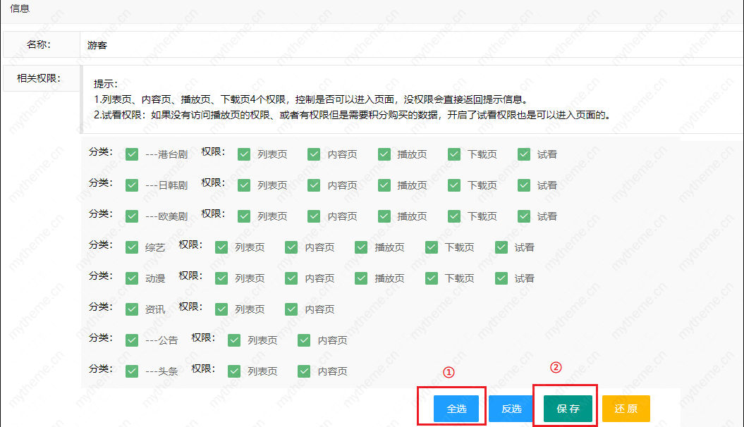 2,刚添加的新分类是没有游客权限的,也就是必须要开通下权限才可以方便观看电视直播。详细的开通分类权限步骤可参考此教程进行开通:http://www.xnaidog.com/pgqxw71.html