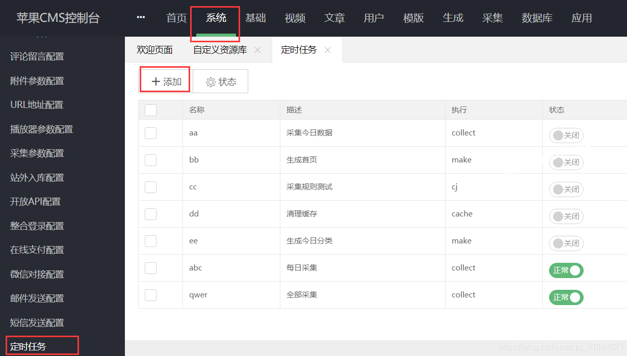 复制链接地址后台选择 系统–定时任务,选择添加,添加一个定时任务。
