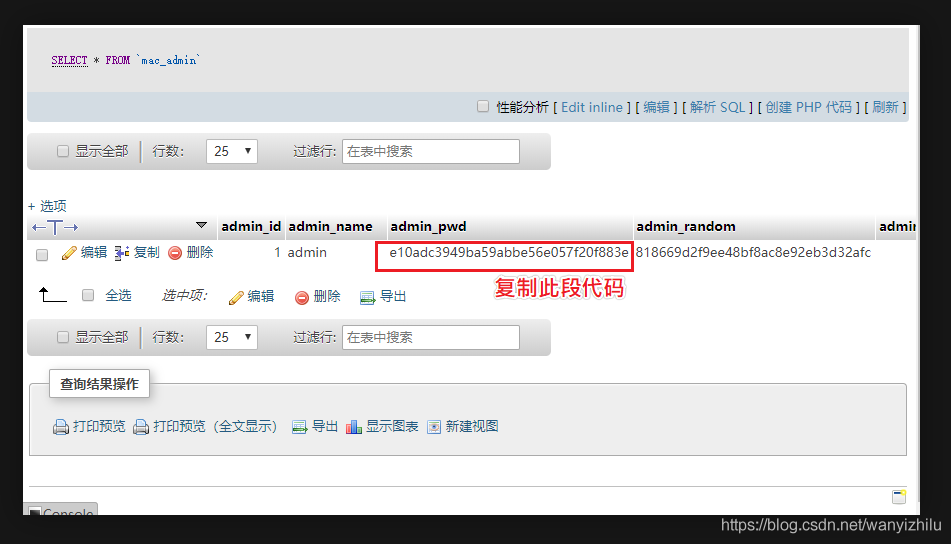 2,我们使用mysql管理工具(如phpmyadmin)登陆到数据库,打开表单mac_admin,可以看到一下结果:
