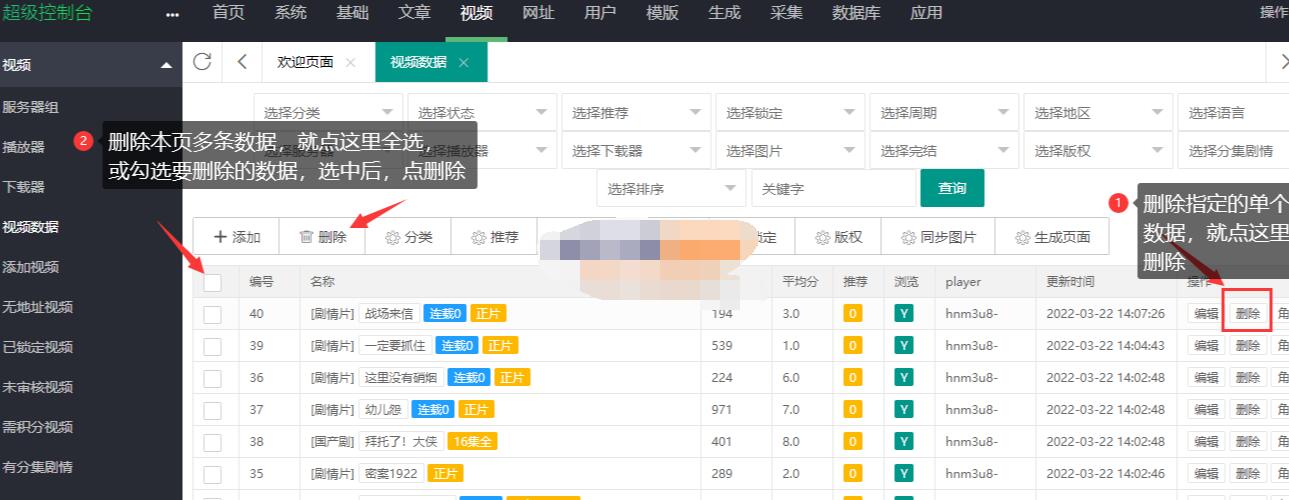 苹果cmsv10删除数据有以下几种方式:1、通过sql语句,清空视频数据