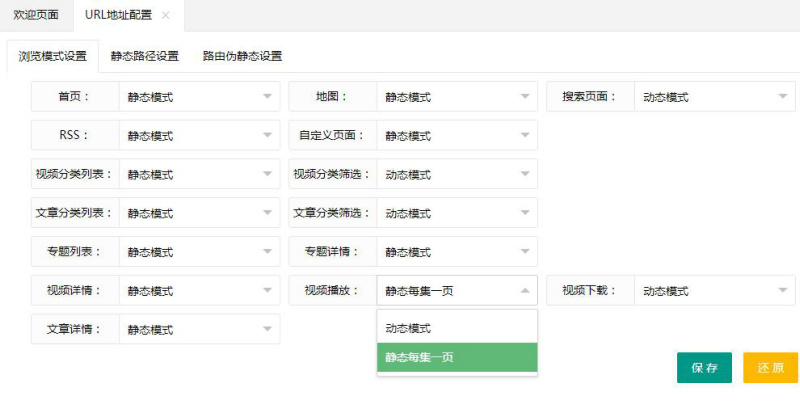 苹果cms程序为网站管理员提供了全站数据页面和首页的静态化公功能,通俗的讲就是将首页、视频和文章的分类页、列表页、数据页等等页面全部生成为单独的静