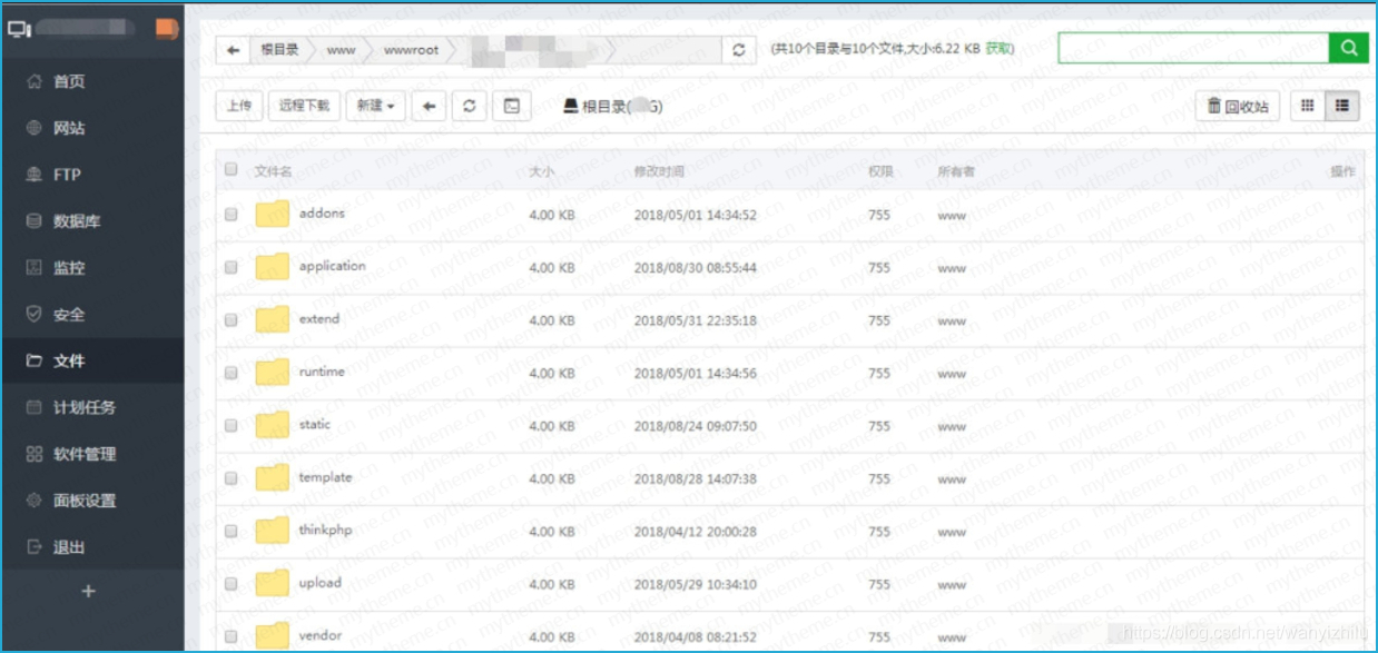 2、下载完成后上传到服务器根目录下,可以使用FTP工具上传,我使用的是宝塔,一方面是上传速度比较快,还有一个原因是因为FTP工具上传有可能需要设置权限,使用宝塔就比较方便了,上传完成后解压。
