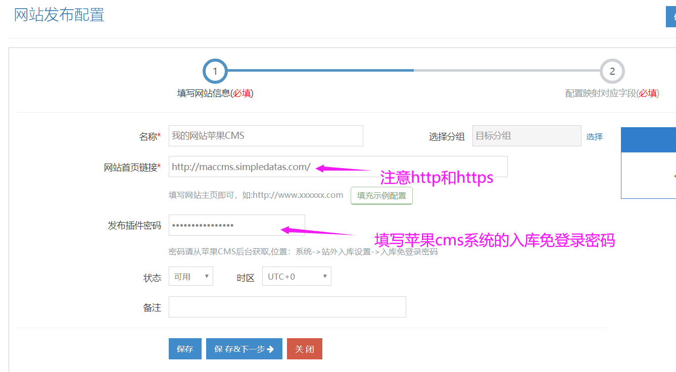 进入简数控制台,从”我的采集任务“列表中打开一个任务,进入采集任务管理页面,找到【发布目标管理】 ==》点击【发布更多CMS】==》点击【苹果CMS文章】,在配置页面填写基本信息和设置发布对应字段,如下图: