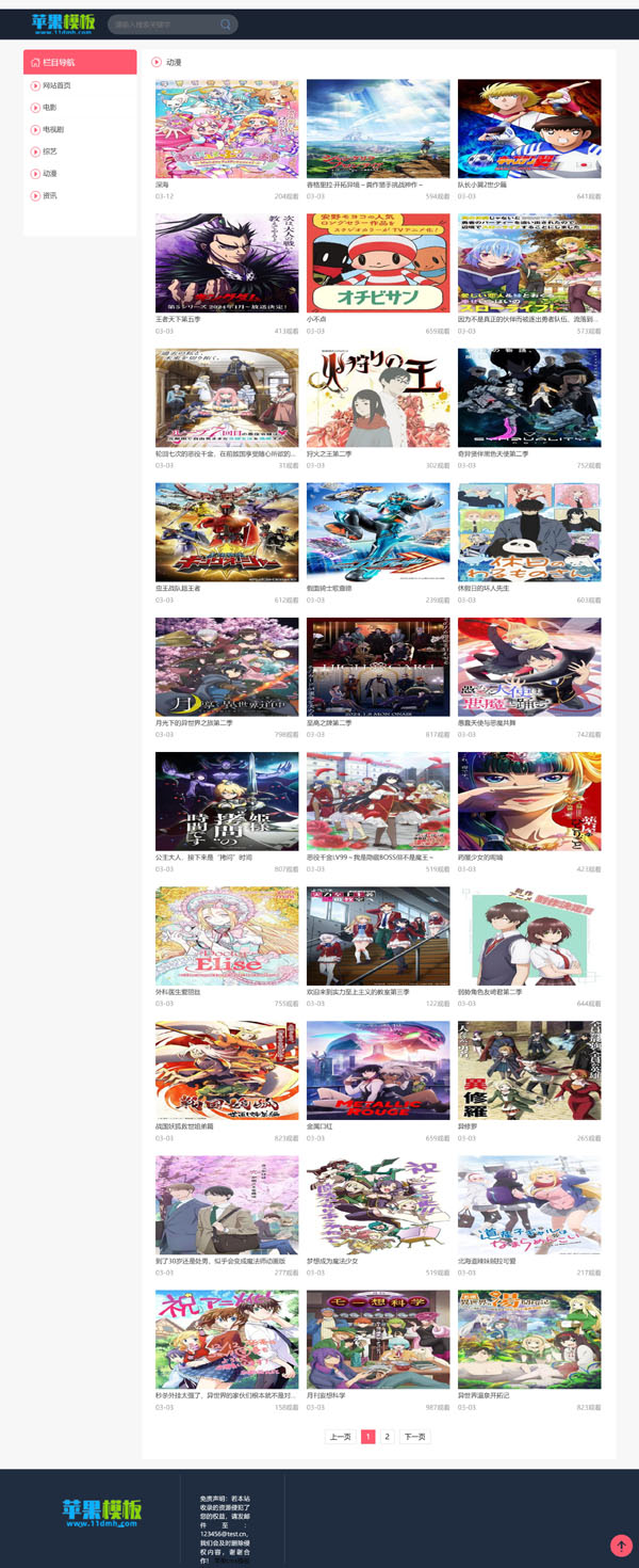 非传统竖版设计,而是与红粉电影站/x站自适应模板一样,大胆采用了左侧导航栏,区别在于之前粉色,而这套模板是其基础上的红色设计,当然在一些细节上也有些许差异,清理
