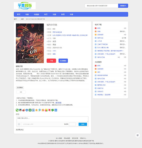 蓝色简约影视网站自适应4号模板下载 -苹果cms10模板免费下载