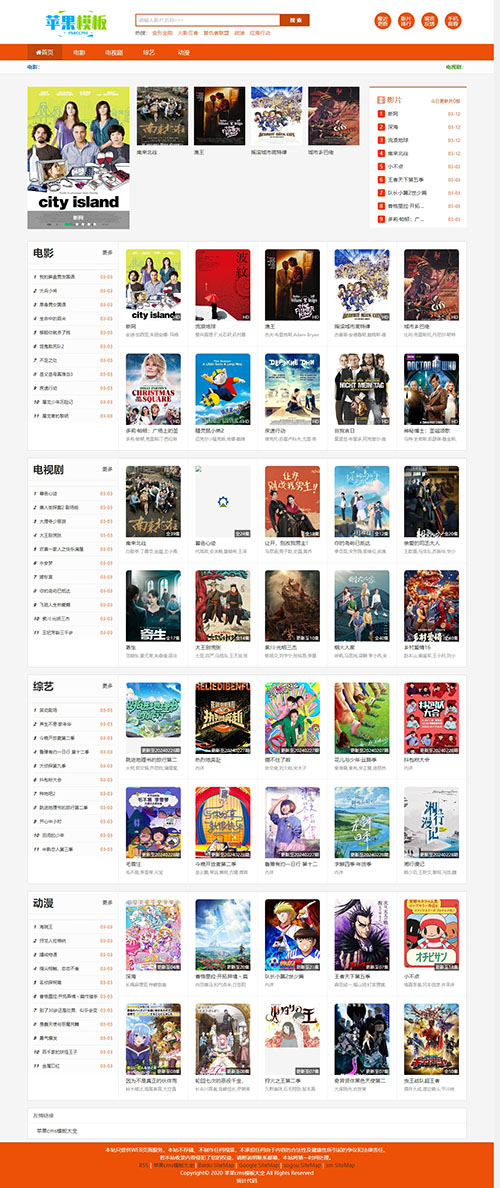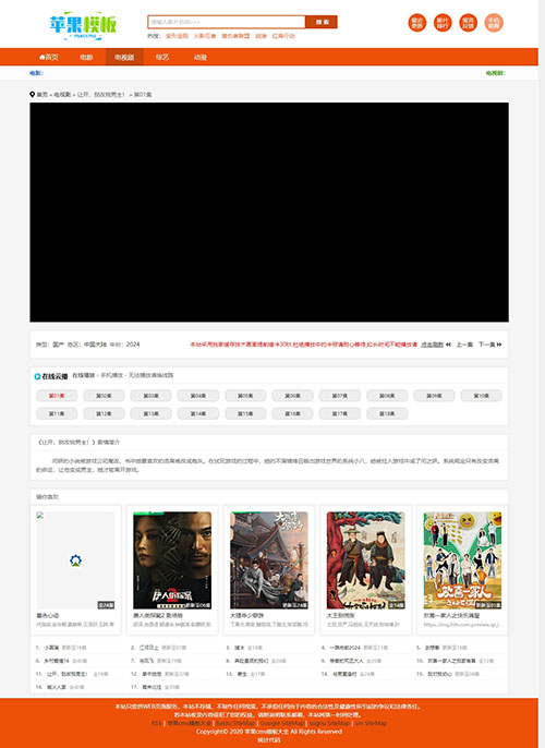 橙色影视网站自适应模板下载 -苹果cms10模板免费下载