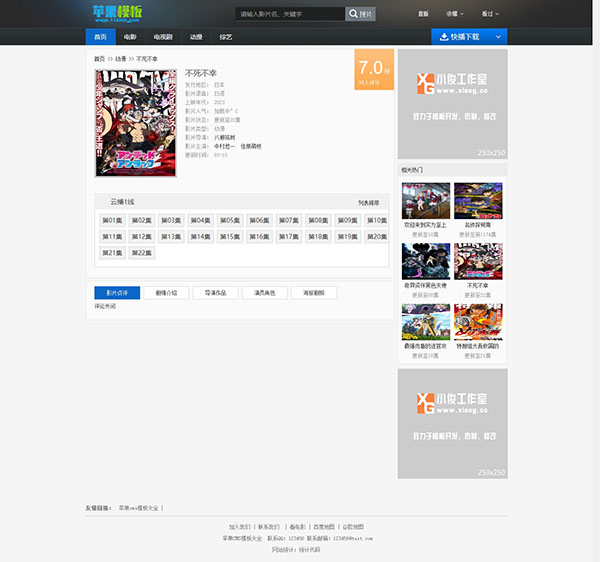 清爽蓝色影视网站手机端7号模板下载 -苹果cms8模板免费下载